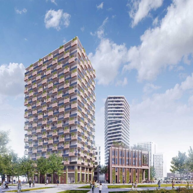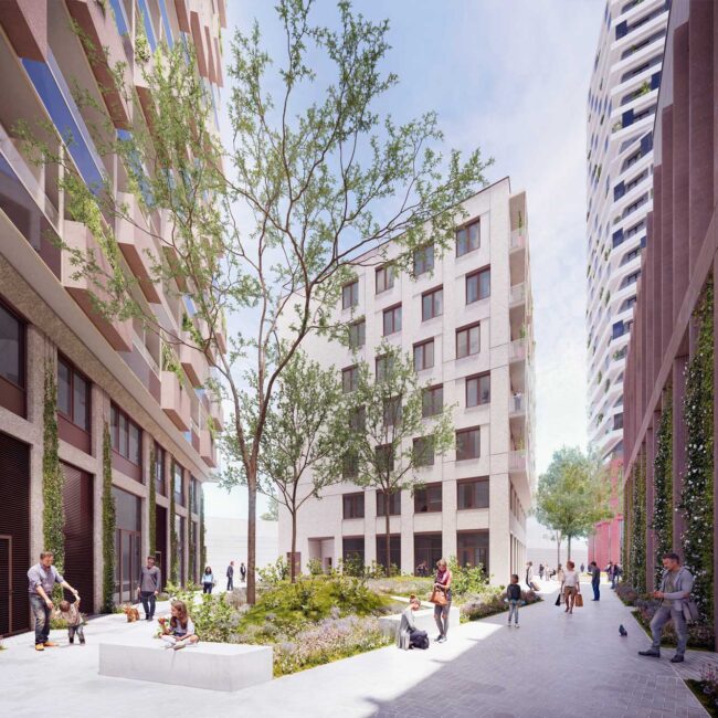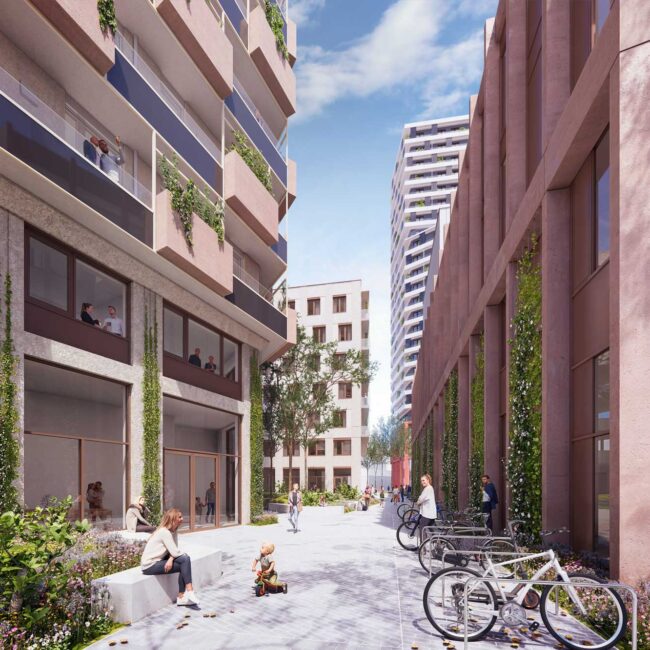 Darüber hinaus wird das Potenzial des Standorts durch die Kombination von technischen Innovationen mit der intelligenten Nutzung natürlicher Ressourcen und möglicher Synergien vor Ort optimal genutzt, um so eine nachhaltige, effiziente Gesamtlösung zu schaffen. Begrünte Dächer und Fassaden, autofreie Freiräume und nachhaltige Mobilität schaffen ein zukunftsorientiertes Umfeld mit Fokus auf Lebensqualität und umweltbewusste Urbanität.