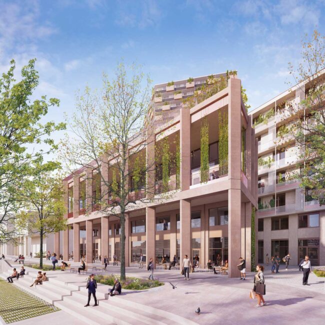 Viel Grünflächen und schattige Plätze sorgen für Abwechslung und besondere Aufenthaltsqualität. Mit ihrer smarten Durchwegung ist die Sockelzone nahtlos ins Quartier eingebunden, während die verkehrsberuhigte Lage und Fahrradfreundlichkeit urbane, umweltfreundliche Mobilität neu definieren.